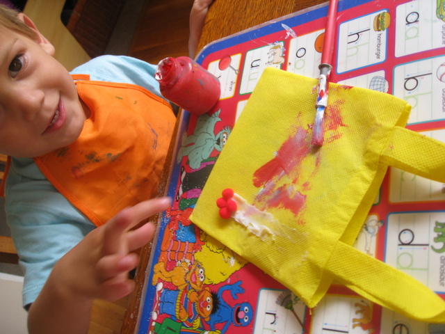 4. Prepare Your Workspace: Lay down a protective covering to prevent paint from spreading onto surfaces. Have all your materials organized and within reach to create a comfortable and accessible workspace. We just used a laminated placemat as our workspace, but you could place sheets of newspaper or plastic table cloths, too.