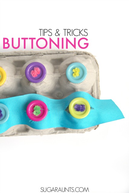 Esta actividad de abotonado utiliza un cartón de huevos reciclado para trabajar las habilidades específicas necesarias para abrochar botones. Estas son unas actividades estupendas para abotonarse para los niños de preescolar y los que tienen dificultades con la motricidad fina para abrocharse la ropa.