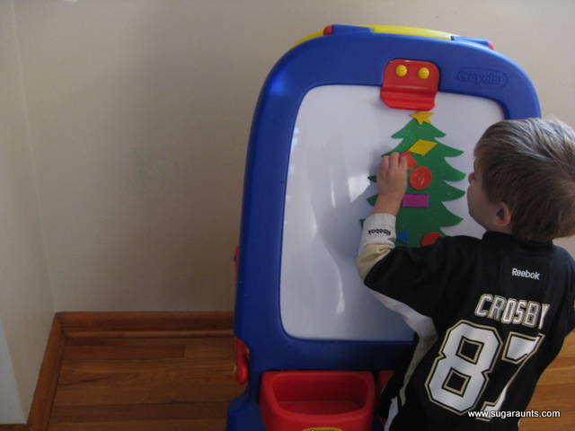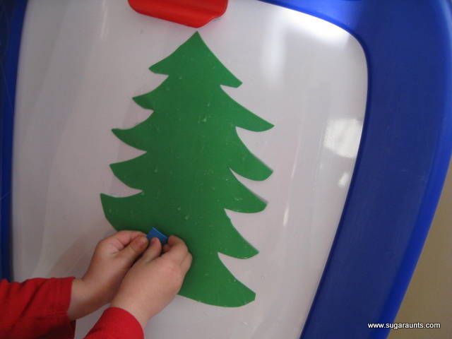 Everyone was so excited when they realized the shapes would stick and had a blast decorating our little tree.