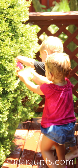 El pequeño podría haber hecho esto durante una hora, creo… si no fuera porque su divertida hermanita y su primo les echaron agua a todos.