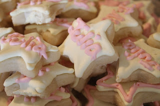 Barras de Pretzel bañadas en chocolate fundido rosa con mis estrellas de caramelo glaseado…ver el post aquí