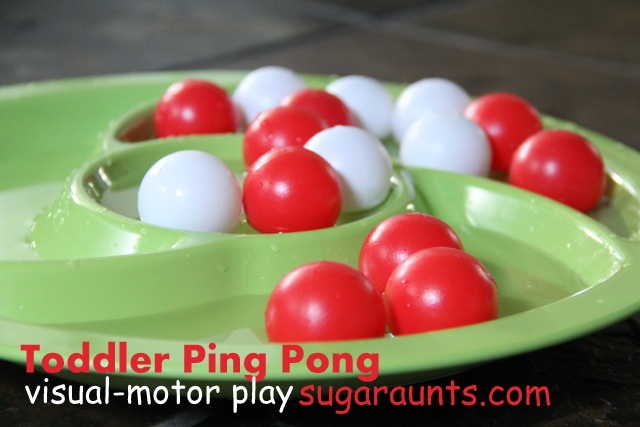 Recoger es un gran ejercicio visual-motor para los niños pequeños. Trabajan la coordinación mano-ojo, las habilidades motrices para coordinar la pala para agarrar la pelota mientras se desplaza, y además, ¡es simplemente divertido!