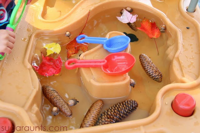 Fuimos a la caza de la naturaleza y encontramos una cesta entera de piñas, bellotas y hojas de colores. El pequeño dijo: “¡Mamá, eso parece de la naturaleza!”