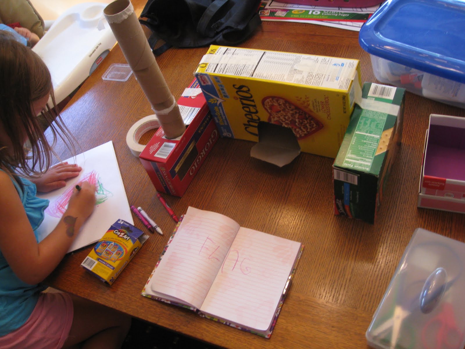 Big Sister and I had a couple of hours to ourselves when the other kids were napping one afternoon. We went on a hunt for crafting materials in an interesting place…the recycle bin!