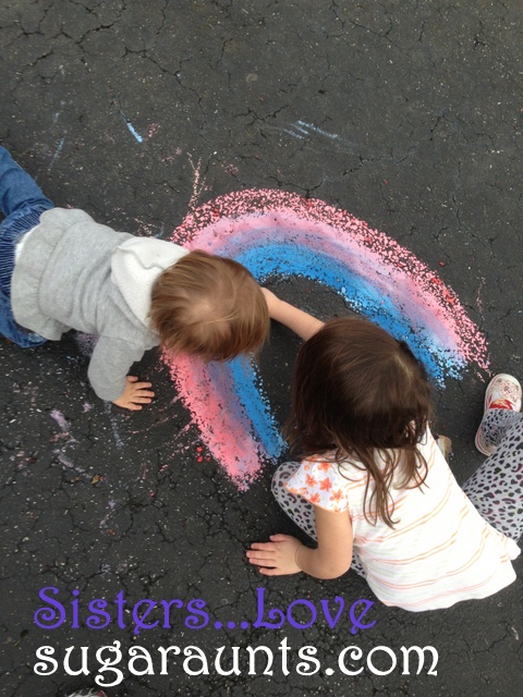 Big Sister is learning to read beginner words. I wrote some “-ar” words on the driveway in chalk (car, jar, far, star) and she would walk from the word to copy the words in magnets on the garage.
