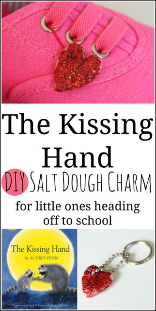 Estamos muy contentos de iniciar esta serie con nuestro primer libro, “La mano que besa” de Audrey Penn. Hemos leído este libro cada año antes de que la hermana mayor se vaya al colegio, así que este libro es muy significativo para nosotros. Este año, esta tía tiene tres pequeños que van a la escuela. La transición puede ser difícil incluso para los más niño seguro de sí mismo. (¡Y los papás y mamás también!) Decidimos hacer un Un amuleto de pasta de sal DIY que puede ir al colegio con tu pequeño alumno y recordarle durante todo el día el amor de su mamá por él.